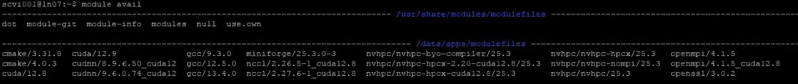 module avail查看系统中可用软件,查询到 cuda12.8 的 module 环境名称为cuda/12.8
