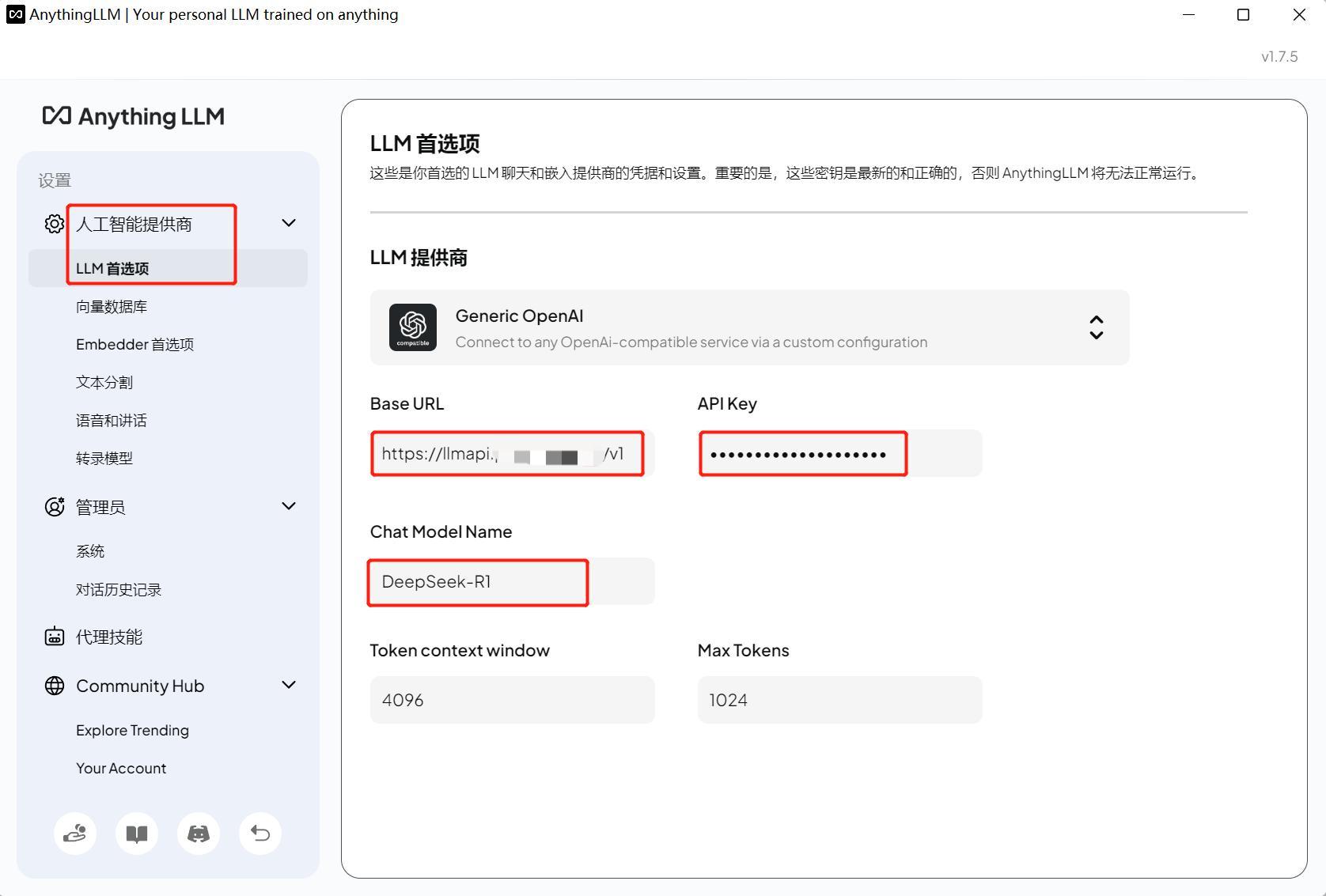 (3)更改LLM设置,选择左下角第四个图标,再选择人工智能提供商-LLM首选项