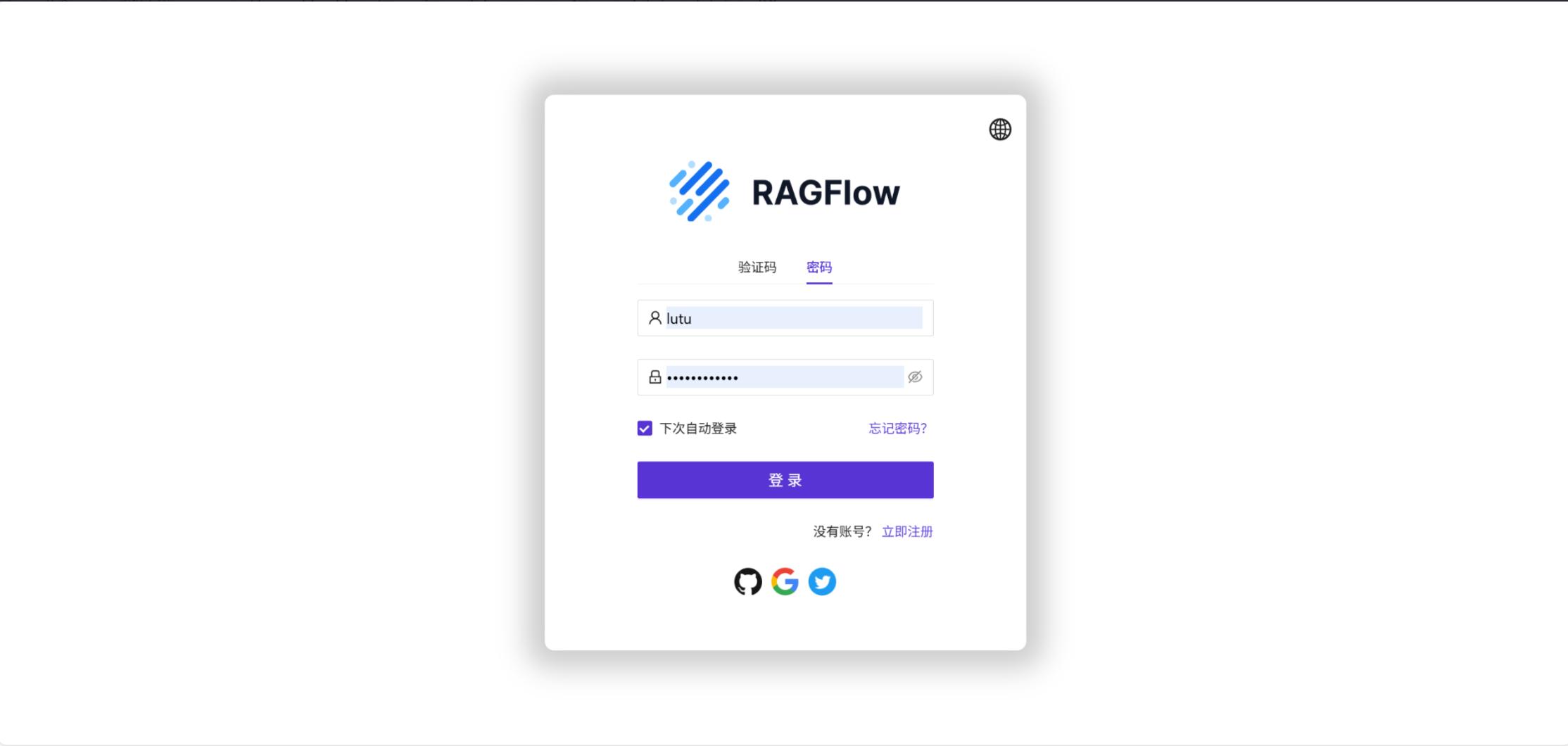 (1)登录RAGFlow(本次演示使用官方的demo:https://demo.ragflow.io,执行注册登录)