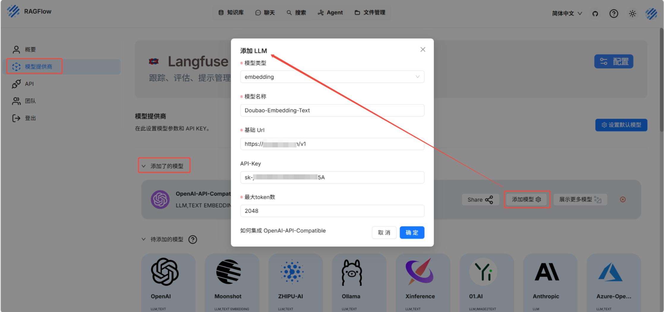 (3)添加其他模型:模型提供商 — 添加了的模型 — 添加模型