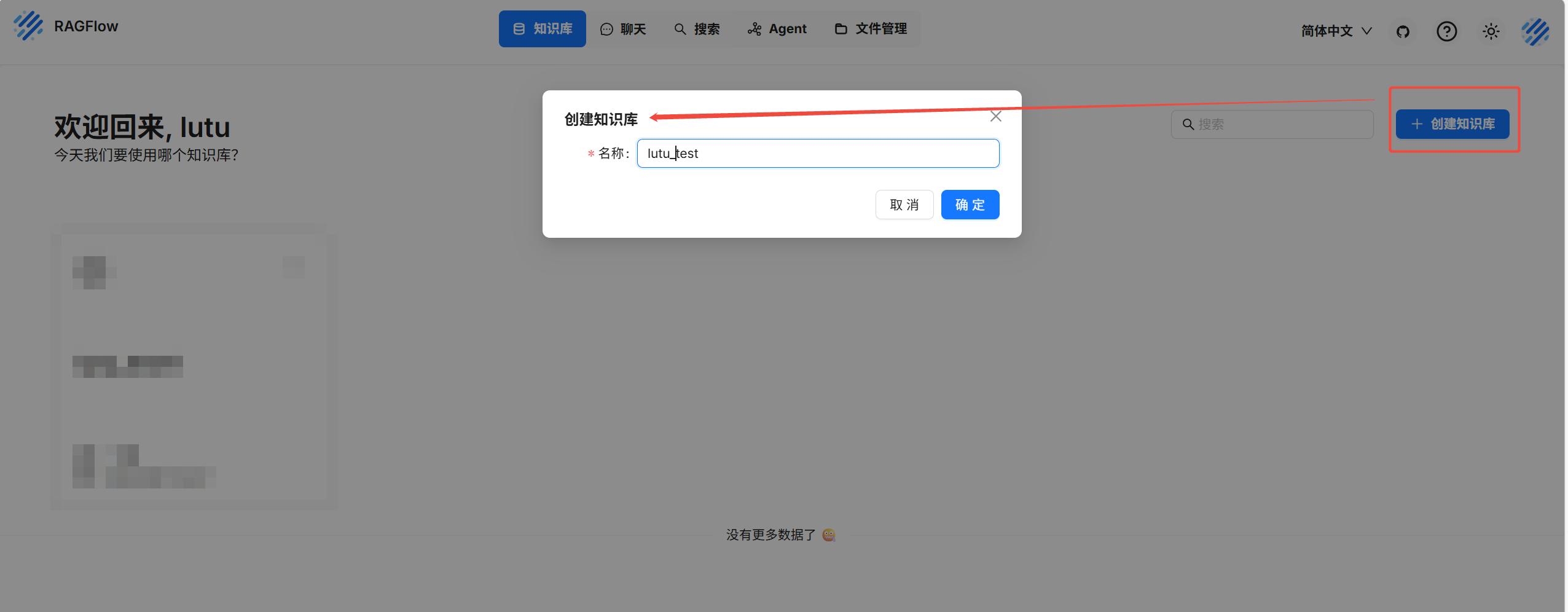 知识库 — 创建知识库(自定知识库名称)
