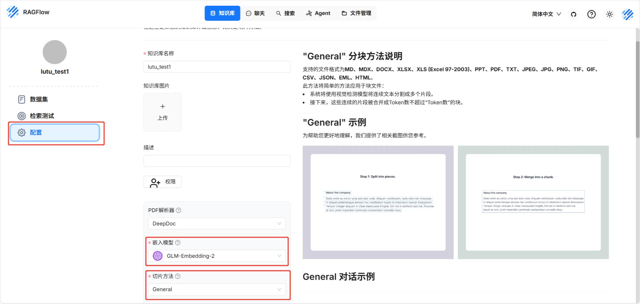 设置嵌入模型和切片方法: